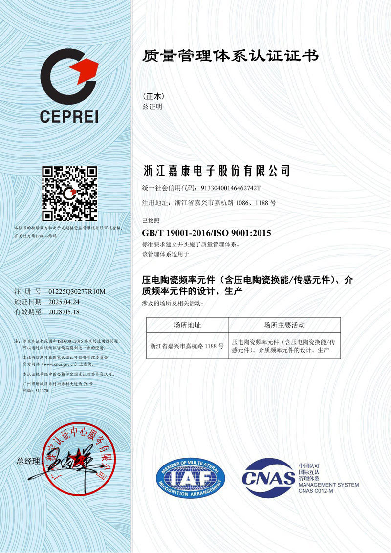 陶瓷諧振器類郵箱:resonator.sales@jkelec.com
